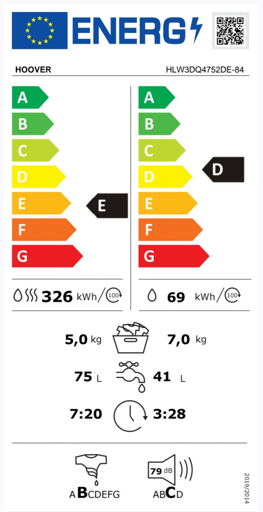 Hoover Waschtrockner 7/5 kg - 1400 U/min. Waschen & Trocknen